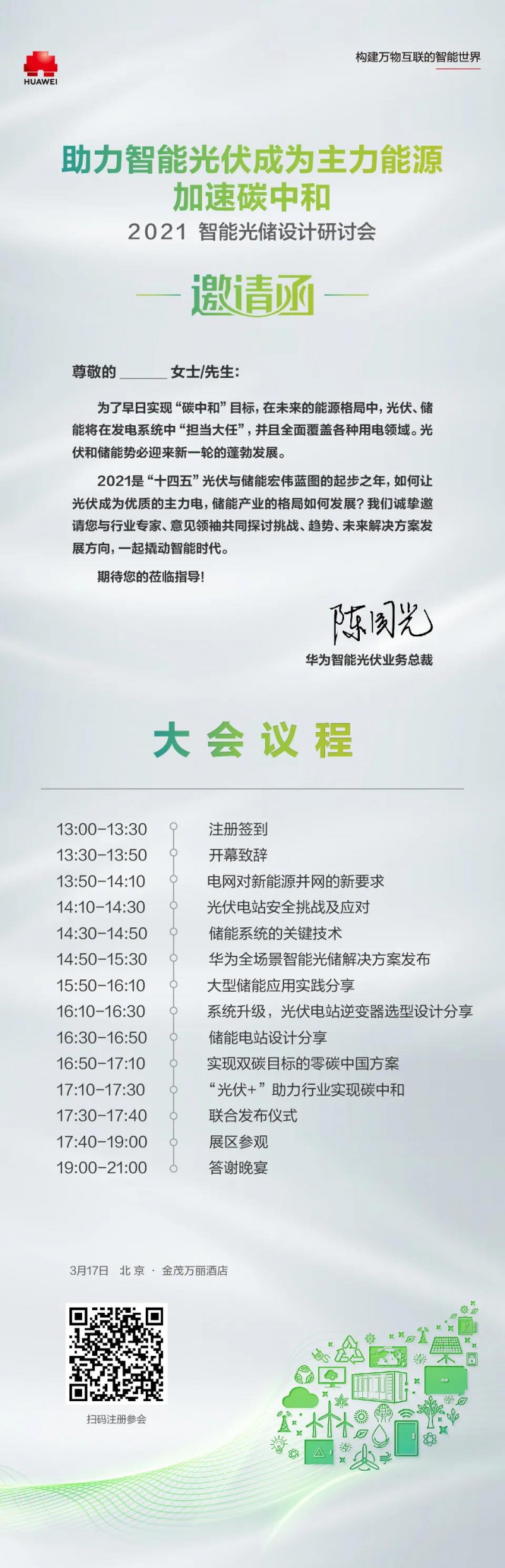 2021是“十四五”光伏與儲能宏偉藍圖的起步之年,讓光伏發(fā)電可儲可控,已成為能源轉型的必然選擇。如何助力智能光伏成為主力能源,促進儲能、光伏產業(yè)協(xié)同良性發(fā)展,是實現(xiàn)我國碳中和目標的重中之重。為了盡快迎接零碳時代的到來,3月17日,2021智能光儲設計研討會即將在北京舉辦,掃描圖片下方二維碼即可報名參會!