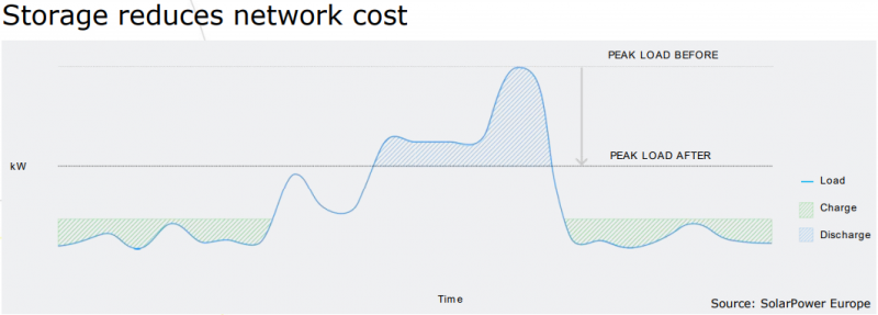 其次,儲能系統(tǒng)減輕了電網(wǎng)需求峰值和發(fā)電量峰值的負擔,避免了由于用電量提升而進行的電網(wǎng)升級費用(圖二所示)。另外,對于偏遠地區(qū)的場景,光伏+儲能可以24小時獨立運作,變成一個“小型電網(wǎng)”,從而避免大規(guī)模的電網(wǎng)鋪設(shè)工程。更進一步來說,這與人類未來暢想的能源形式不謀而合:家庭用電將不再依托于大型電網(wǎng),而由獨立的小型電網(wǎng)支持,符合能源去中心化的概念。