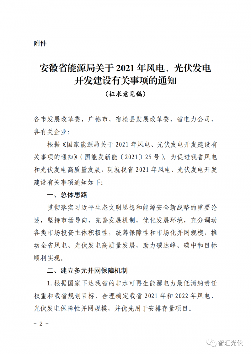 近日,安徽省能源局就《關(guān)于2021年風(fēng)電、光伏發(fā)電開發(fā)建設(shè)有關(guān)事項(xiàng)的通知(征求意見(jiàn)稿))》公開征求意見(jiàn)。