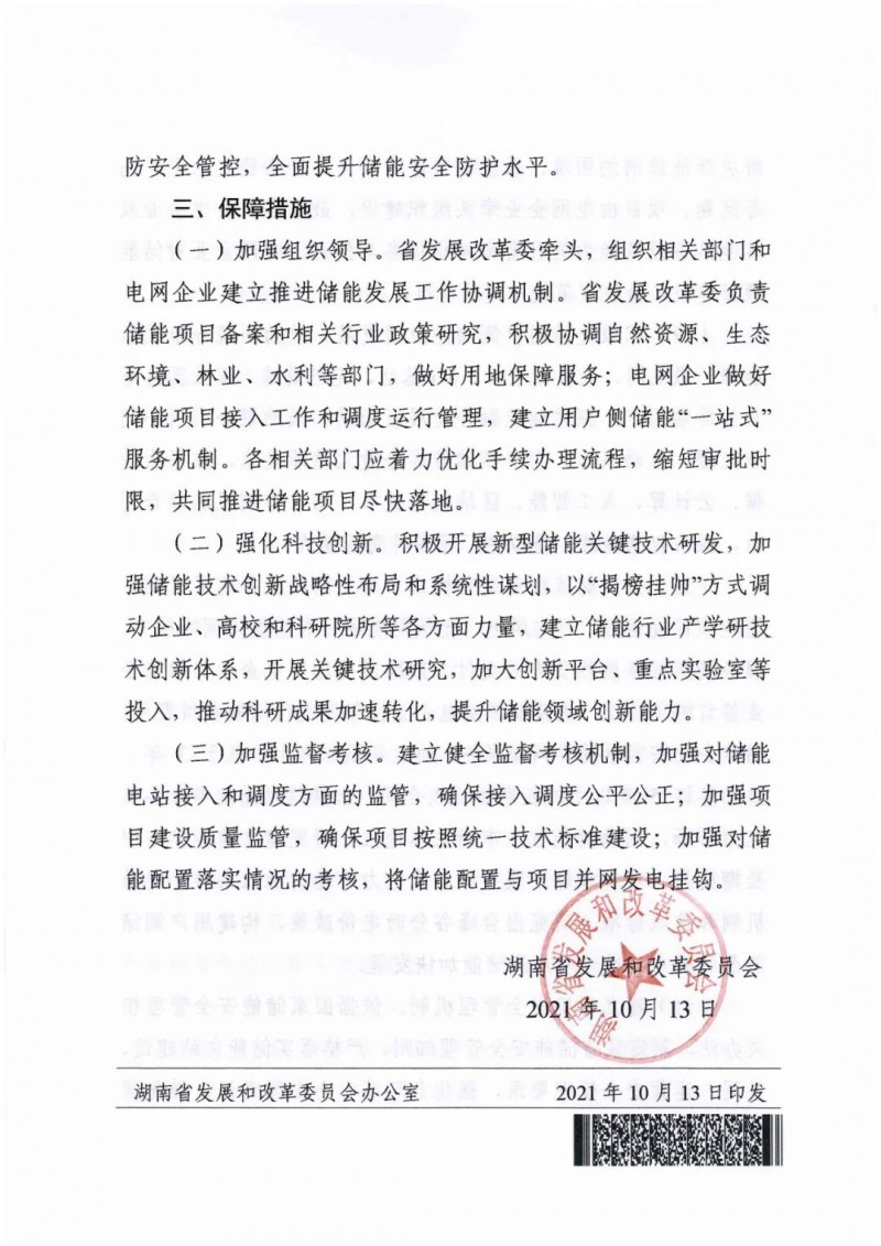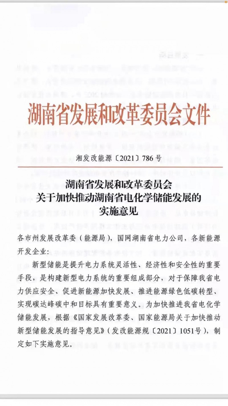 10月13日,湖南省發(fā)改委下發(fā)《關于加快推動湖南省電化學儲能發(fā)展的實施意見》,文件明確以發(fā)展電網側獨立儲能為重點,集中規(guī)劃建設一批電網側儲能電站,力爭到2023年建成電化學儲能電站150萬千瓦/300萬千瓦時以上。