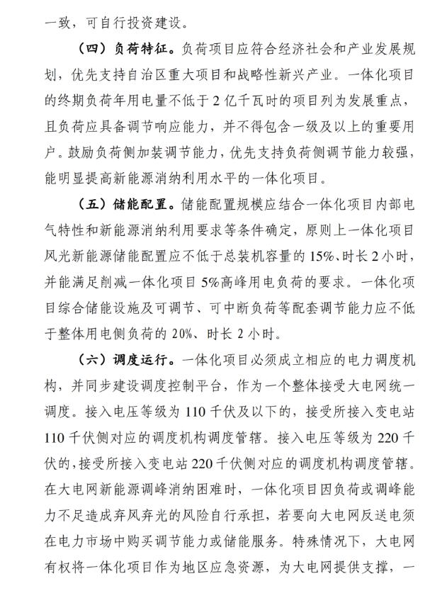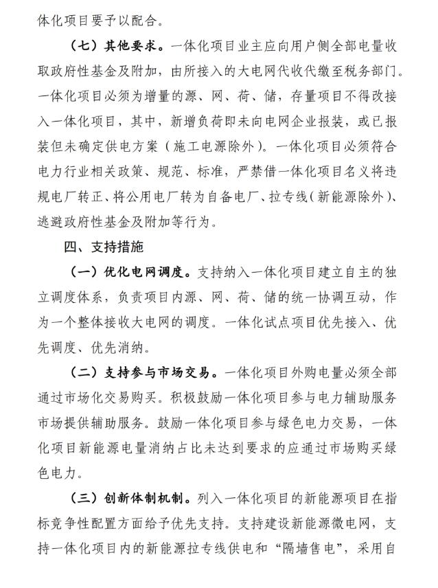 一體化項(xiàng)目外購電量必須全部通過市場化交易購買。積極鼓勵一體化項(xiàng)目參與電力輔助服務(wù)市場提供輔助服務(wù)。鼓勵一體化項(xiàng)目參與綠色電力交易,一體化項(xiàng)目新能源電量消納占比未達(dá)到要求的應(yīng)通過市場購買綠色電力。