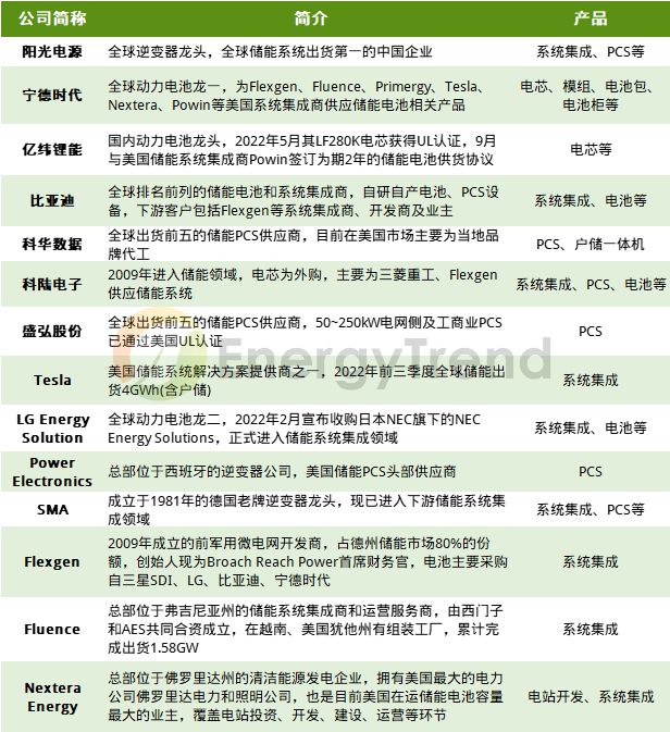 美國是全球主要儲能區(qū)域市場之一,當(dāng)前,進入該市場門檻雖高,但競爭格局良好。隨著2023年美國光伏裝機重新恢復(fù)增長及ITC補貼力度的加大,預(yù)計美國儲能需求將恢復(fù)翻倍以上的增速。不少儲能企業(yè)紛紛加速“出海”,以全面進軍海外市場為主要目標(biāo)。