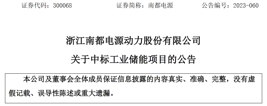 浙江南都電源動(dòng)力股份有限公司中標(biāo)中國(guó)移動(dòng)工業(yè)儲(chǔ)能項(xiàng)目