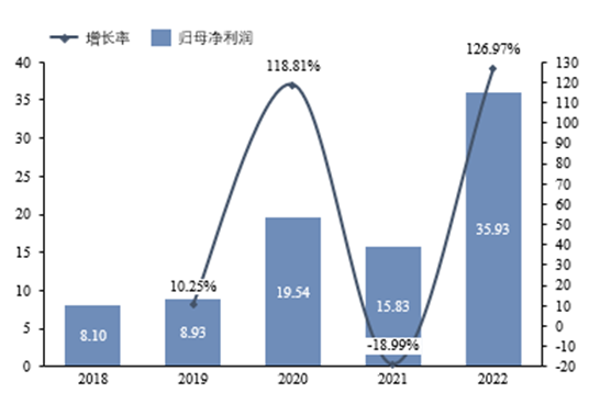 圖表 21:2018-2022年英克維歸母凈利潤(rùn)及增速 單位:億元,%