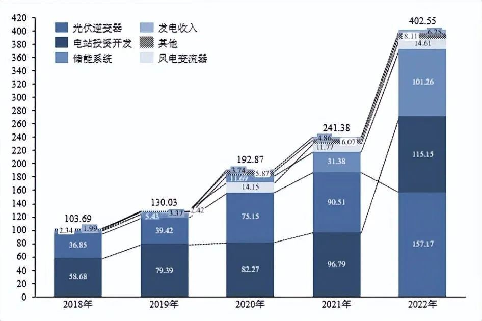 圖表 18:2018-2022年陽(yáng)光電源營(yíng)收結(jié)構(gòu) 單位:億元