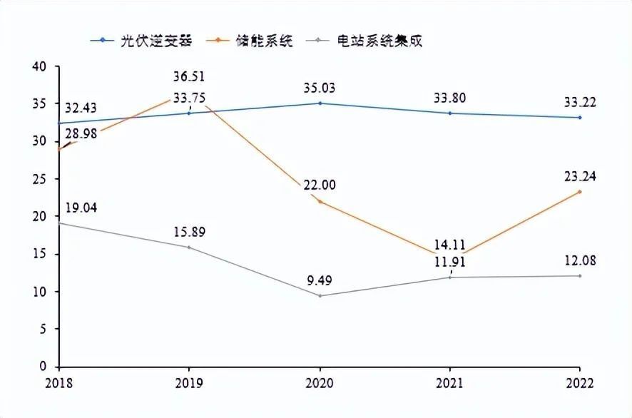 圖表 19:2018-2022年陽(yáng)光電源主要業(yè)務(wù)毛利趨勢(shì) 單位:%