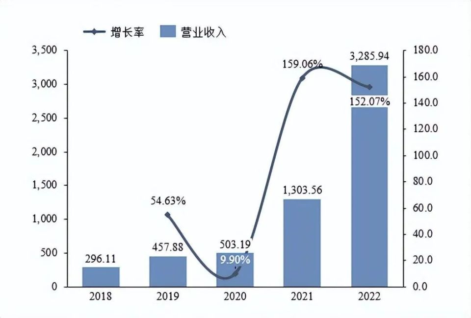 圖表 16:2018-2022年陽(yáng)光電源營(yíng)業(yè)收入及增速 單位:億元,%