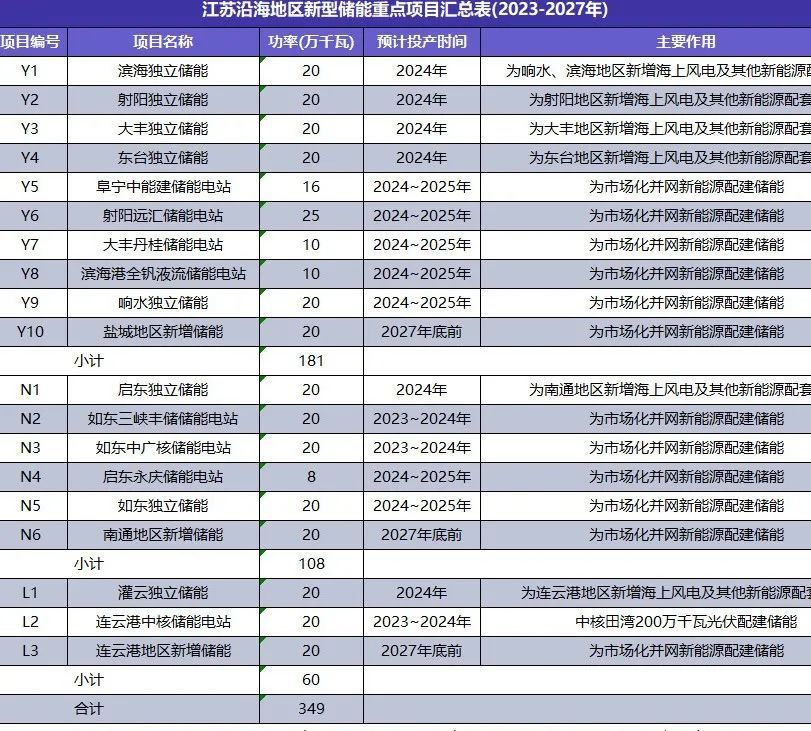 在沿海地區(qū)重點開展 19個 大型新型儲能項目的規(guī)劃布局工作,項目規(guī)??傆?349萬千瓦, 其中: