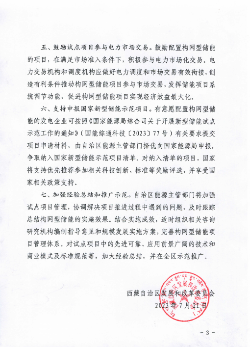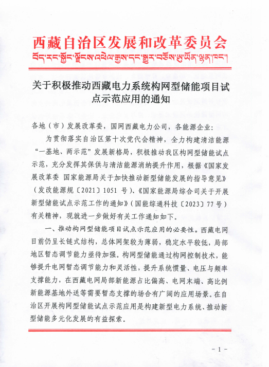7月24日,西藏自治區(qū)發(fā)展和改革委員會印發(fā)關(guān)于積極推動西藏電力系統(tǒng)構(gòu)網(wǎng)型儲能項目試點(diǎn)應(yīng)用的通知(以下簡稱“通知”)。