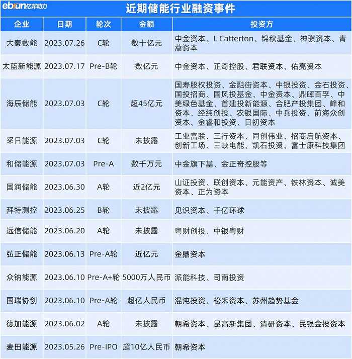 7月27日,儲能科技公司大秦數(shù)能完成B輪及C輪融資,B輪融資由優(yōu)山資本領(lǐng)投,C輪融資由中金資本旗下基金領(lǐng)投,華興資本擔任財務(wù)顧問,累計融資金額數(shù)十億元。