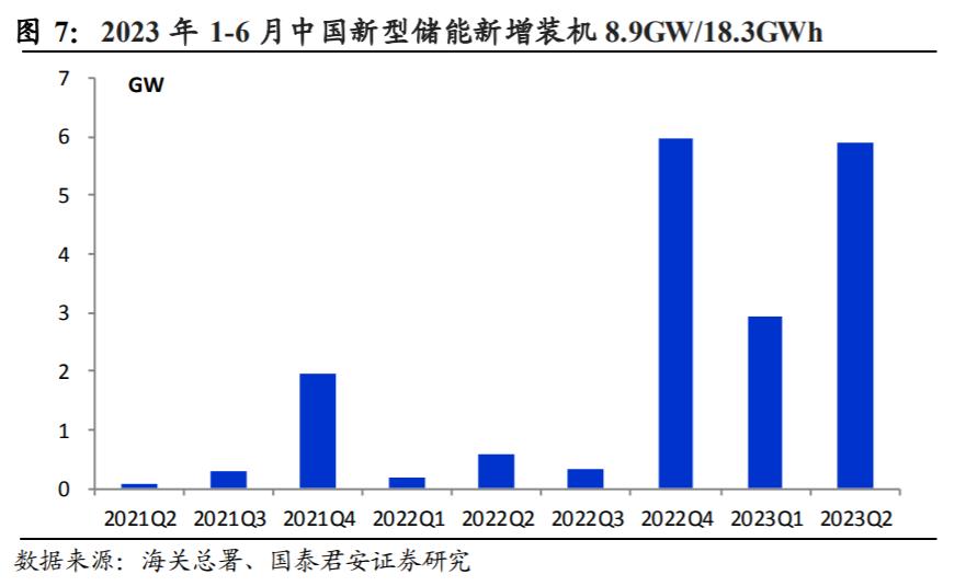 據(jù)中關村儲能產業(yè)技術聯(lián)盟(CNESA)數(shù)據(jù),2023年第二季度,我國新型儲能新增裝機5.9GW/12.3GWh,環(huán)比增長96.7%/105%;意想不到的是,今年上半年,我國新增投運新型儲能規(guī)模達到8.0GW/16.7GWh,超過去年全年的水平。