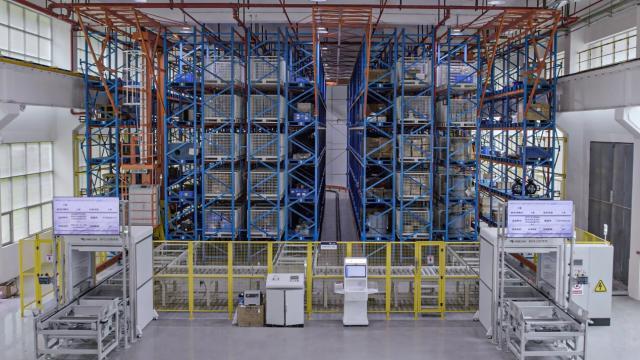 為了更好地提升倉(cāng)內(nèi)空間利用率,在進(jìn)行現(xiàn)場(chǎng)測(cè)量與規(guī)劃后,京東物流通過投入使用堆垛機(jī)、智能升降貨柜、料箱AGV等智能設(shè)備為其進(jìn)行了一系列軟硬件改造升級(jí),最大程度利用場(chǎng)地空間,建設(shè)超萬個(gè)儲(chǔ)位,儲(chǔ)位最高可放置重量達(dá)1000公斤的物資。與此同時(shí),京東物流還全面利用人臉識(shí)別技術(shù),語音播報(bào)、燈光指引、智能墨水屏、重力式感應(yīng)貨架等硬件,部署智能軟件系統(tǒng),實(shí)現(xiàn)24小時(shí)無人化值守,提高領(lǐng)料效率,確保安全生產(chǎn)。