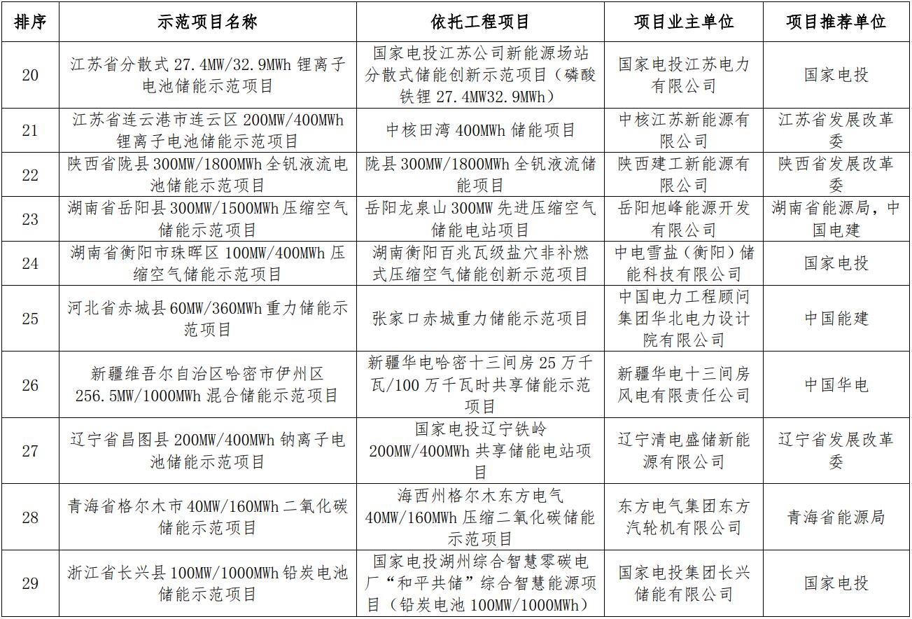 國(guó)家能源局綜合司關(guān)于公示新型儲(chǔ)能試點(diǎn)示范項(xiàng)目的通知