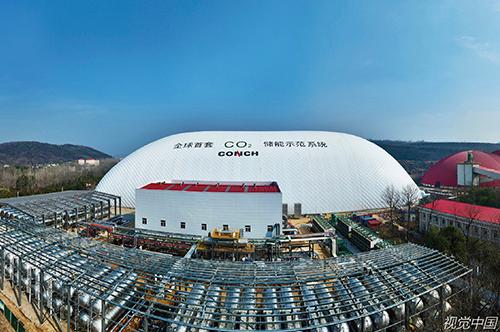 2024年1月9日,安徽省蕪湖市,繁昌區(qū)繁陽鎮(zhèn)庫山村,航拍正在并網(wǎng)發(fā)電的海螺集團(tuán)10MW/80MWh二氧化碳儲(chǔ)能示范系統(tǒng)項(xiàng)目。