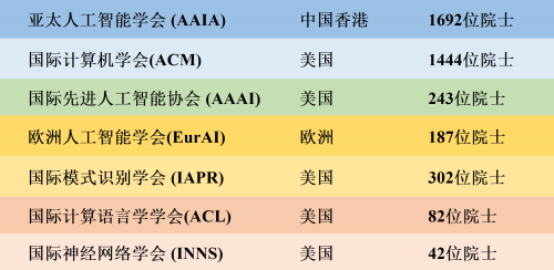亞太人工智能學(xué)會成立于2021年4月,經(jīng)過三年的發(fā)展,亞太人工智能學(xué)會(AAIA)院士數(shù)量達(dá)到1692位。通過對全球主流人工智能學(xué)會官網(wǎng)數(shù)據(jù)的統(tǒng)計(jì)分析發(fā)現(xiàn),與同級別的國際人工智能組織相比,亞太人工智能學(xué)會(AAIA)的院士數(shù)量和質(zhì)量已經(jīng)非常領(lǐng)先。