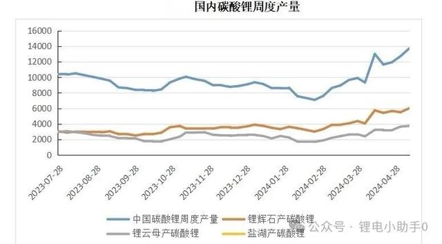 據(jù)統(tǒng)計,4月我國碳酸鋰產(chǎn)量約5.3萬噸,加上凈進口量20859,4月我國碳酸鋰表觀消費量超7萬噸,環(huán)比增長約20%。