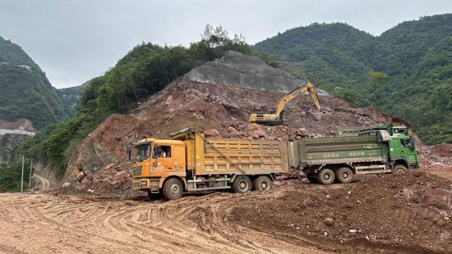 工程車正在裝運(yùn)從山體里挖出的石頭。李蔓毓