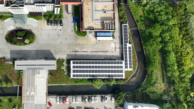港區(qū)新建的非機動車車棚頂部光伏設(shè)施 汪舒婷 攝