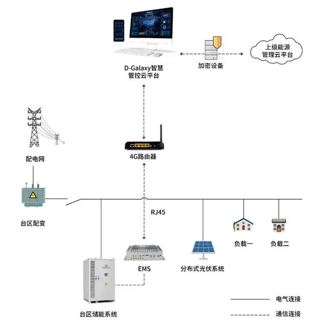 此外,該項(xiàng)目還全面接入了弘正D-Galaxy智慧儲(chǔ)能云平臺(tái),依托三級(jí)EMS架構(gòu)與云邊端協(xié)同體系,加速多個(gè)臺(tái)區(qū)間的信息交互與優(yōu)化調(diào)控。通過實(shí)時(shí)監(jiān)測(cè)臺(tái)區(qū)配變、分布式光伏和儲(chǔ)能系統(tǒng)運(yùn)行狀況,智能控制系統(tǒng)能夠進(jìn)行能量管理策略與運(yùn)行模式切換、故障自動(dòng)預(yù)警和應(yīng)急處理,有效緩解負(fù)荷尖峰、提高剩余容量的利用率、提升臺(tái)區(qū)運(yùn)維效率,以全生命周期數(shù)字化管理服務(wù)保障臺(tái)區(qū)儲(chǔ)能系統(tǒng)安全穩(wěn)定運(yùn)行。