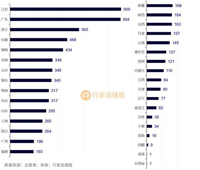 分區(qū)域來(lái)看,7月新增儲(chǔ)能相關(guān)企業(yè)主要分布在江蘇、廣東、浙江等地,這些地區(qū)也正是工商業(yè)儲(chǔ)能發(fā)展相對(duì)比較領(lǐng)先的地區(qū)。