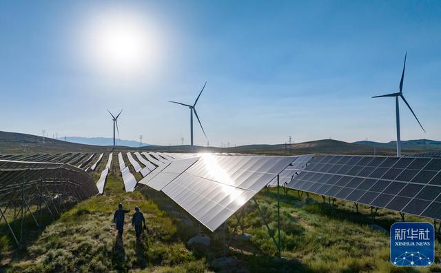 ↑8月21日,在寧夏吳忠紅寺堡區(qū)太陽山鎮(zhèn)吳忠第五十光伏電站,工作人員在檢查光伏發(fā)電設(shè)備運(yùn)行情況(無人機(jī)照片)。