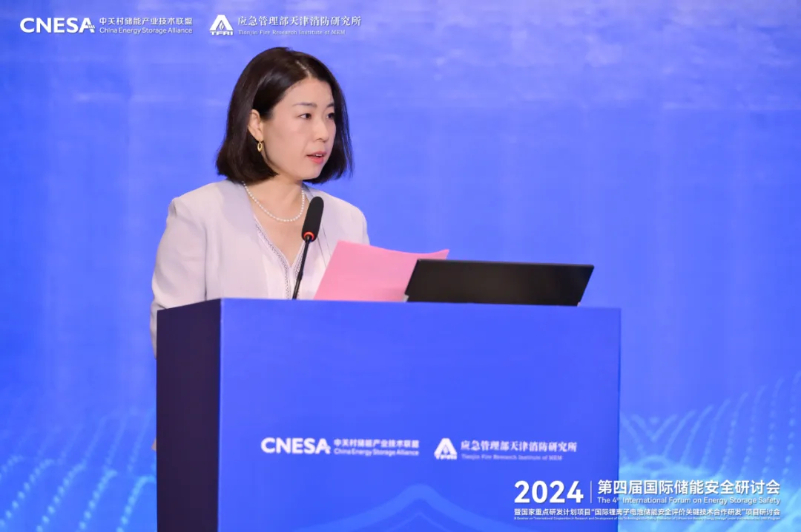 世界銀行能源顧問Aakarshan Vaid介紹了美國、英國、澳大利亞等發(fā)生的儲能火災(zāi)典型事故、儲能不同階段的現(xiàn)狀等。應(yīng)急管理部天津消防研究所科技處處長李晉重點(diǎn)介紹了鋰離子電池儲能安全評價(jià)技術(shù)研究進(jìn)展。