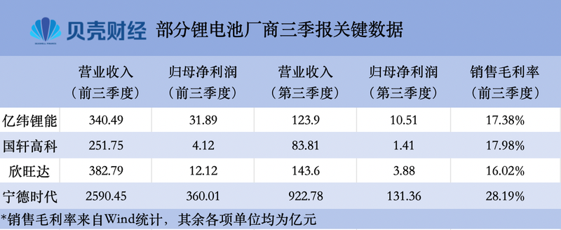 隨著鋰電池廠商三季報披露收官,同處于二線陣營的億緯鋰能、國軒高科、欣旺達(dá)業(yè)績表現(xiàn)不一,動力電池業(yè)務(wù)的毛利率普遍同比下降。