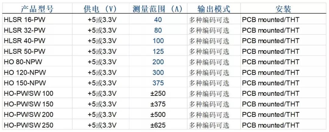 萊姆最新發(fā)布的系列數(shù)字輸出型開環(huán)霍爾效應(yīng)電流傳感器:HO和HLSR,它們就是基于Σ-Δ調(diào)制器原理,輸出信號為1位串行比特流信號的數(shù)字傳感器。該新品具有4種不同的機(jī)械設(shè)計(jì)來滿足PCB安裝和盤式安裝的要求,其可以對額定值為16、32、40、50、80、100、120、150、200、250ARMS的電流進(jìn)行測量(如表1所示,圖4所示),并具有20kHz帶寬,12位的分辨率。