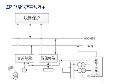 如圖2為220kV線路單套保護(hù)網(wǎng)絡(luò)結(jié)構(gòu)圖,保護(hù)裝置與合并單元和智能終端為“直采直跳”模式,保護(hù)裝置直接從合并單元接收SV采集信號,從智能終端獲取刀閘和開關(guān)的位置,并直接向智能終端發(fā)出跳合閘命令。
