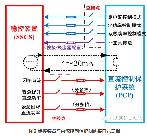是指在“純開關(guān)量接口”的基礎(chǔ)上,穩(wěn)控裝置的“開關(guān)量”分檔控制命令,變?yōu)榱恕澳M量”無極控制。這里的“模擬量”是指工業(yè)控制系統(tǒng)中常用來傳輸非電物理量(如溫度、壓力、角度等)的4~20mA電流信號,如圖2虛線部分所示。