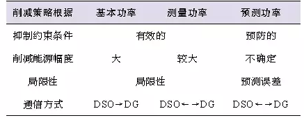 文獻(xiàn)[6]在結(jié)合文獻(xiàn)[5]研究成果的基礎(chǔ)上,描述了如何在規(guī)劃之中考慮不同的動態(tài)削減發(fā)電出力方法。不同削減策略的比較如表1所示,文中利用測量功率和短期預(yù)測功率來削減DG發(fā)電出力,證明了在簡單地削減DG發(fā)電出力的情形下,很容易保證電網(wǎng)運行的可靠性,即故障發(fā)生前就可以被修復(fù)。在分布式能源提供更多系統(tǒng)服務(wù)(如電壓平衡、無功補償?shù)龋┑膹?fù)雜主動配電系統(tǒng)區(qū)域內(nèi),則必須采用短期預(yù)測技術(shù)。