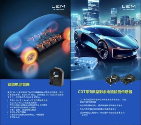 展會(huì)期間,萊姆電子重點(diǎn)展示了CAB-SF系列磁通門電流傳感器、CDT系列B型剩余電流檢測(cè)傳感器、HSTDR系列電流傳感器等汽車領(lǐng)域?qū)I(yè)產(chǎn)品及其在新能源汽車電機(jī)控制、BMS管理中的電流測(cè)量方案。