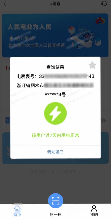 查詢操作也十分簡單:只需打開網(wǎng)上國網(wǎng)app,點擊“e普查”模塊,掃描住戶用電電能表上的條形碼(即表號),隨后將自動生成綠、黃、紅三種查詢結(jié)果,快速呈現(xiàn)出該住戶的用電情況。