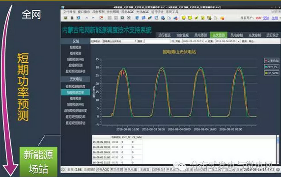 2014年12月,光伏發(fā)電信息采集和實時監(jiān)視;2015年11月,光伏發(fā)電短期和超短期預(yù)測;2016年1月,光伏發(fā)電概率預(yù)測;2016年7月,風(fēng)光火蓄協(xié)調(diào)實時閉環(huán)控制,新能源調(diào)度運行指標(biāo)統(tǒng)計系統(tǒng);全面實現(xiàn)可觀、可控、可預(yù)測。