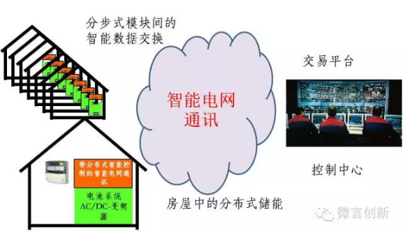 分布式微電網(wǎng)上的能量和產(chǎn)生的數(shù)據(jù),通過智能電網(wǎng)和因特網(wǎng)實現(xiàn)互聯(lián)互通,將相關(guān)信息發(fā)布到交易平臺上。微電網(wǎng)本身也由很多小模塊組成,集結(jié)在一起能夠做到在當(dāng)?shù)叵牡羲a(chǎn)生的能量。