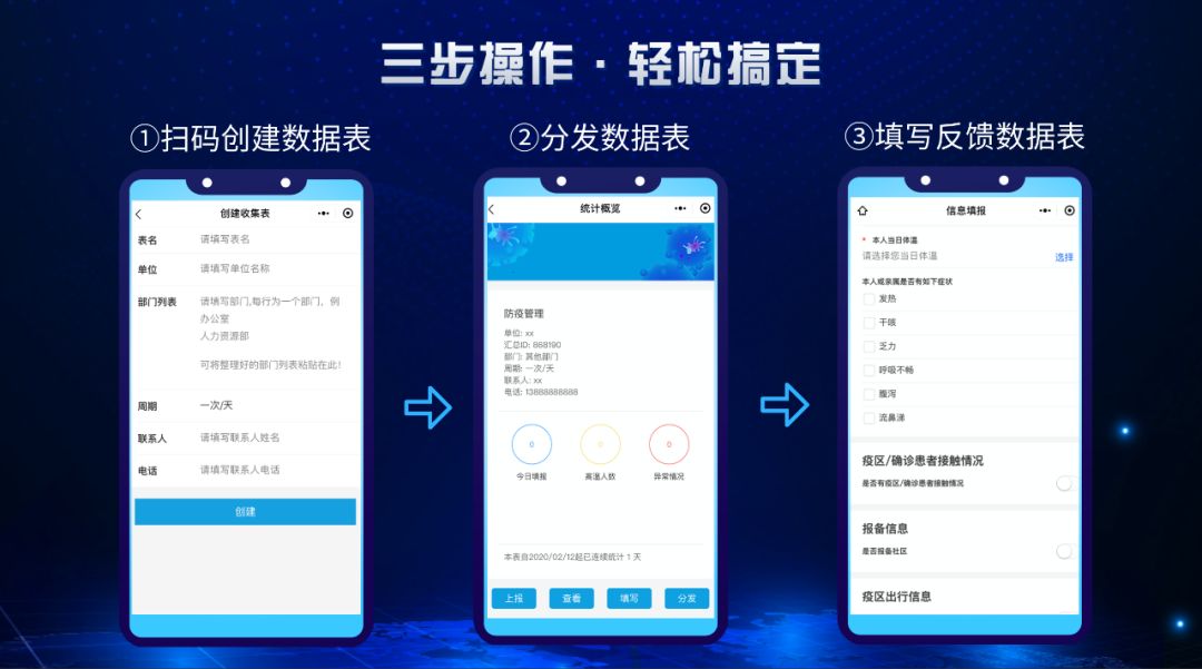 只需微信掃描二維碼進入界面,簡單進行三步操作即可搞定每日繁瑣的數(shù)據(jù)收集工作,并在系統(tǒng)后臺進行統(tǒng)計和數(shù)據(jù)匯總。使用說明書?不存在的!一秒上手,簡直So easy!