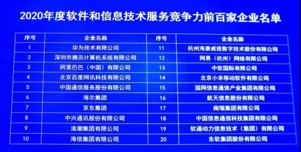 其中,華為、騰訊、阿里巴巴、百度等業(yè)界知名企業(yè)均上榜,國網(wǎng)信通產(chǎn)業(yè)集團憑借多年來在信息通信領(lǐng)域的積累及創(chuàng)新探索,亦成功入選2020年度軟件和信息技術(shù)服務競爭力百強企業(yè),位列第15位。
