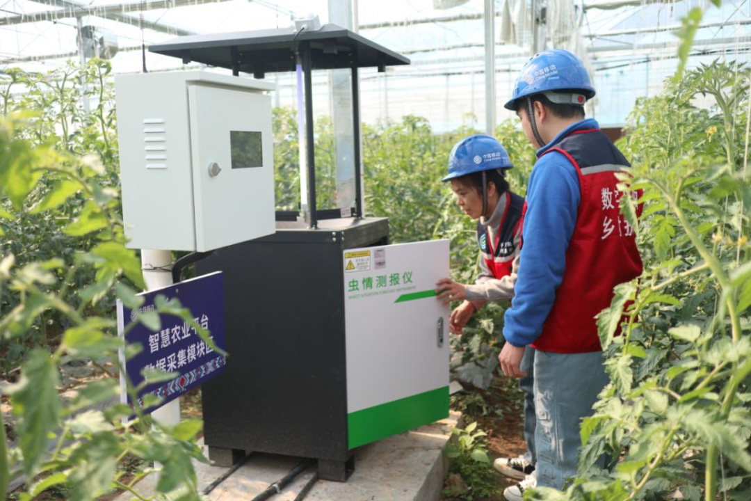移動(dòng)技術(shù)人員調(diào)測(cè)蔬菜大棚的蟲(chóng)情傳感設(shè)備。