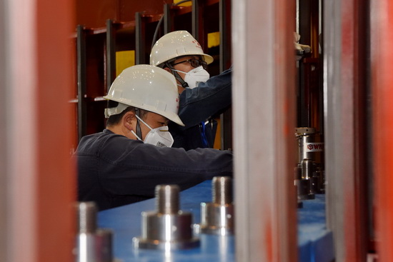 工程復(fù)工后,為了最大程度降低疫情對工期進度帶來的影響,廠生產(chǎn)技術(shù)部積極與施工單位、設(shè)備廠家溝通協(xié)調(diào),提前聯(lián)系哈電線棒嵌裝技術(shù)指導(dǎo)人員、線棒焊接技術(shù)指導(dǎo)人員及焊機廠家人員進場進行隔離,保證到達工程節(jié)點能夠及時進場指導(dǎo)。同時通過增加施工人數(shù),實行人員分組施工,合理優(yōu)化施工工序,做到“人?;畈煌?rdquo;,在嚴格落實各項防疫工作要求的前提下,狠抓施工安全和工藝質(zhì)量,提高工期進度。確保了1號機組定子改造工作按期安全推進。
