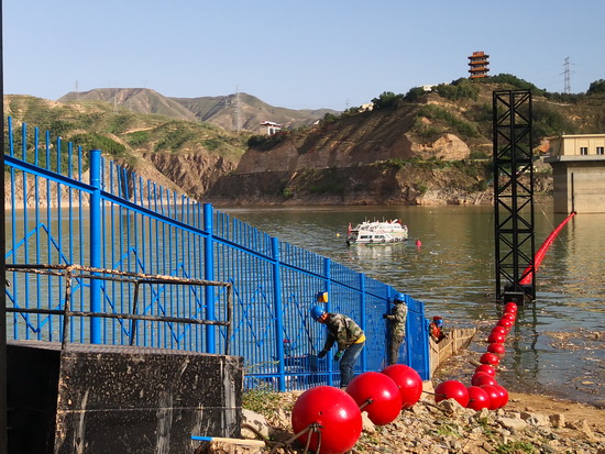 劉家峽水電廠壩前浮球阻攔系統(tǒng)是為防止船舶或人員靠近泄水區(qū)域發(fā)生意外事故而設(shè)置的安全防護(hù)設(shè)施和安全標(biāo)識,主要由浮球、浮箱、滑道、塔架、圍欄及連接鋼絲繩等部件組成。這次維修主要是對2019年汛后檢查中發(fā)現(xiàn)的30個已損壞下沉浮球、連接浮球的繩卡進(jìn)行維修,對浮箱、鋼塔架和滑道等進(jìn)行防腐處理以恢復(fù)其功能。