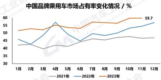 在乘用車市場中,中國品牌占比持續(xù)提升。11月,中國品牌乘用車共銷售155.6萬輛,同比增長37.9%,占乘用車銷售總量的59.7%,比上年同期提升5.4個百分點;1-11月,共銷售1297.8萬輛,同比增長23.8%,市場份額為55.8%。“今年以來,中國品牌乘用車市場占有率一直維持在50%以上,如今已經(jīng)連續(xù)兩個月占比接近60%。”陳士華說。