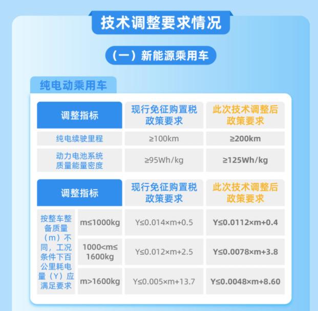 根據(jù)新能源汽車技術(shù)進(jìn)步、標(biāo)準(zhǔn)體系發(fā)展和車型變化等情況,優(yōu)化享受車輛購(gòu)置稅減免政策的技術(shù)要求。12月最新公告明確規(guī)定,自2024年1月1日起,申請(qǐng)進(jìn)入《減免車輛購(gòu)置稅的新能源汽車車型目錄》的車型,需符合新能源汽車產(chǎn)品技術(shù)要求。