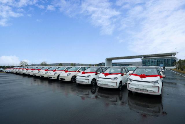 圖為江淮汽車萬臺(tái)新能源汽車出口首批發(fā)車儀式。
