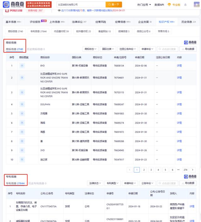 比亞迪的銷(xiāo)量并非僅僅依靠單一車(chē)型,而是憑借其豐富的產(chǎn)品線和精準(zhǔn)的市場(chǎng)定位實(shí)現(xiàn)的。根據(jù)商商查資料顯示,目前比亞迪股份有限公司已經(jīng)擁有了2740項(xiàng)注冊(cè)商標(biāo),27844項(xiàng)專(zhuān)利信息。比亞迪純電動(dòng)乘用車(chē)銷(xiāo)量和插電式混合動(dòng)力乘用車(chē)銷(xiāo)量均取得了顯著增長(zhǎng),展現(xiàn)了其在新能源汽車(chē)領(lǐng)域的深厚積累。