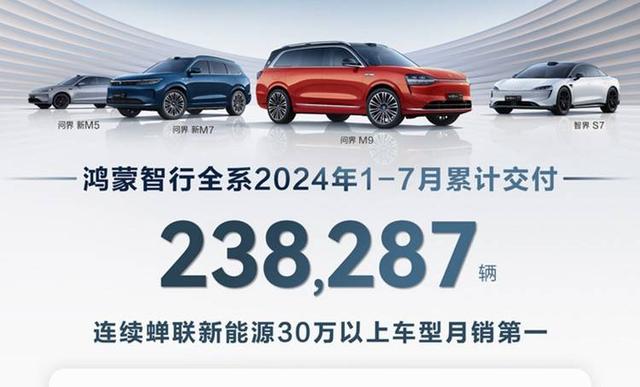 鴻蒙智行在7月交付了44,090輛新車,相比6月有小幅下滑。其中,問界M9勢頭依舊強勁,7月共交付了18,047輛,問界M7交付了16,562輛,問界M5交付了6,926輛,智界S7則交付了2,555輛。今年1-7月,鴻蒙智行累計交付量為238,287輛。