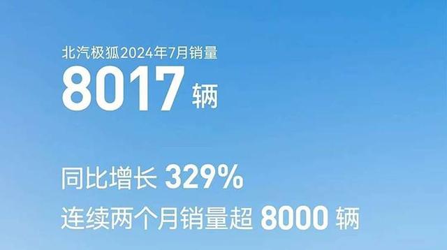 極狐汽車公布了其7月銷量為8017輛,同比增長329%,表現(xiàn)出了強勁的增長勢頭。至此,極狐已連續(xù)兩個月銷量超8000輛。