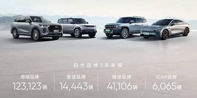 7月奇瑞控股集團整體銷量為195759輛,同比增長30.1%。其中,出口90281輛,同比增長16.8%;新能源銷量45370輛,同比增長254.5%。1-7月份,集團累計銷售汽車1296380輛,同比增長45.4%。