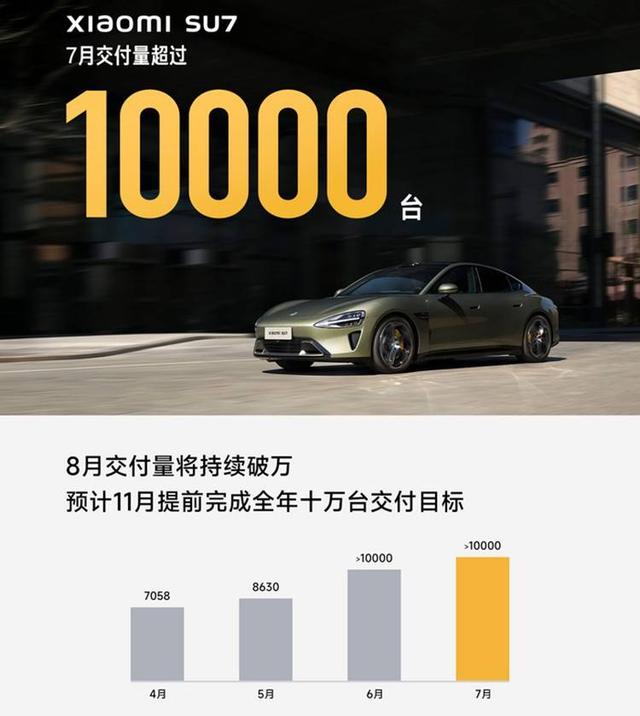 小米7月的交付量超10,000輛,今年累計交付量已經(jīng)超30,000輛。官方預測,其8月的交付量將持續(xù)破萬,預計在11月提前完成全年十萬輛的交付目標。