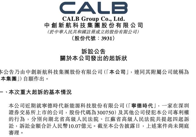 日前,中創(chuàng)新航發(fā)布公告稱,已向?qū)幍聲r(shí)代及相關(guān)公司侵犯其專利權(quán)提起四項(xiàng)訴訟,索賠金額合計(jì)10.07億元。