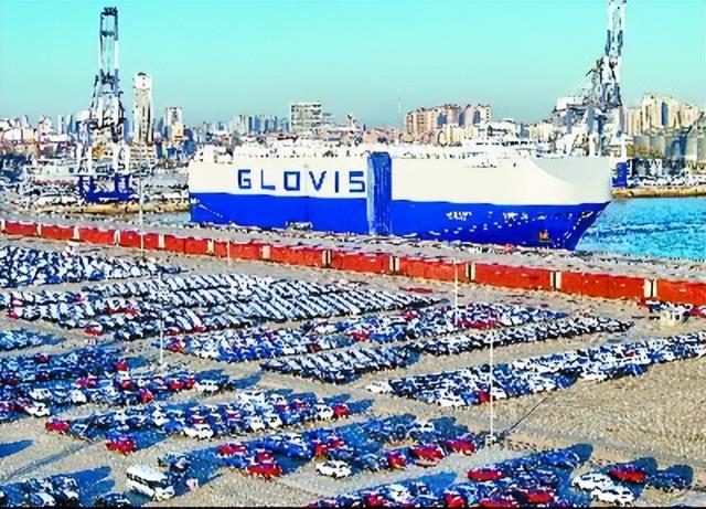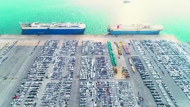 圖片說明1:在碼頭上等待出口裝船的中國汽車。(視覺中國)